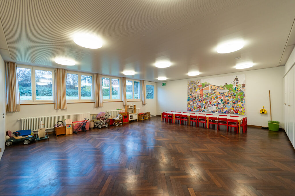 Direkt vis-à-vis vom Coop gelegen, bietet das Haus Raum für Veranstaltungen, Kurse und Begegnungen.