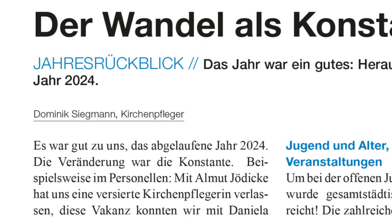 Sie erstattet regelmässig Bericht über ihre Arbeit und die Entwicklung der Kirchgemeinde.
